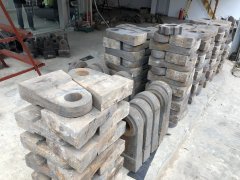 我们生产的主要耐磨备件有:锤式破碎机锤头、衬板、锤轴,颚式破碎机鄂板,反击式破碎机板锤,圆锥破碎机破碎壁和轧臼壁以及其他破碎机耐磨备件。