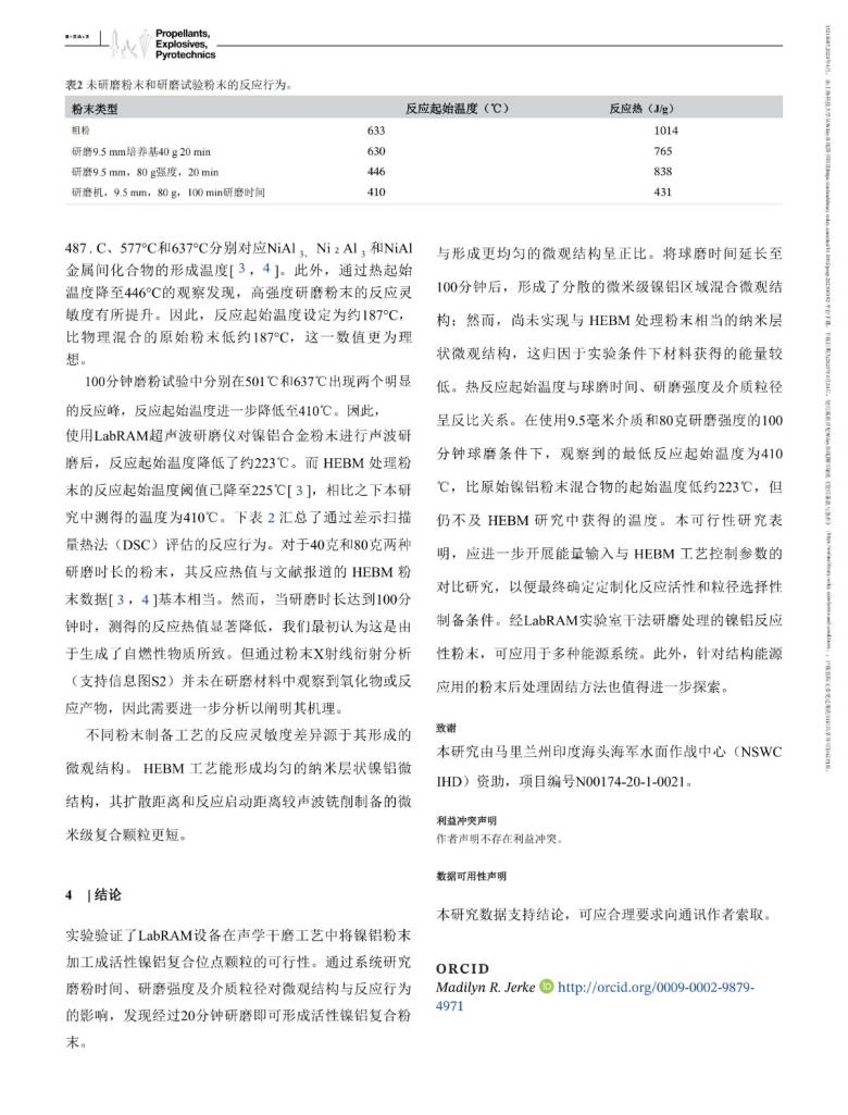 - 声共振机械合金化 制备Ni-Al反应材料的可行性研究与机理探讨