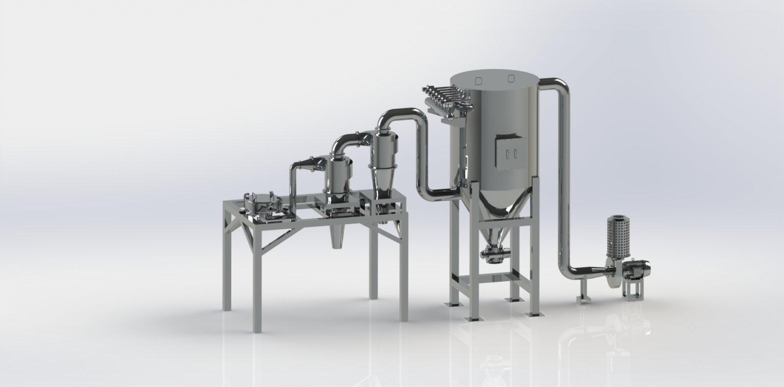 ●可与多级分级机串联使用,一次生产多个粒度段的产品。