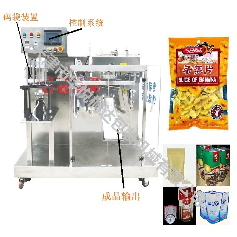 2、多种时尚袋型,包装袋型为普通平袋包装、普通自立袋包装、拉链平袋包装、拉链自立袋包装、各种异型袋包装。选用不同的下料装置,可以包装不同的产品,是实现灵活、经济的包装解决方案,适应包装规格跨度大、包装袋型品种丰富、包装切换频繁的企业选用。