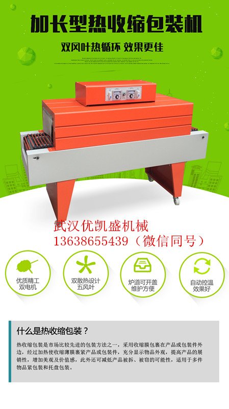 塑料膜包装机,纸盒远红外线热收缩机采用收缩膜包在产品或包装件外面,然后加热,使包装材料收缩而裹紧产品使包装件充分显示物品的外观,具有密封、防潮、防污染。并保护物品免受外部冲击。