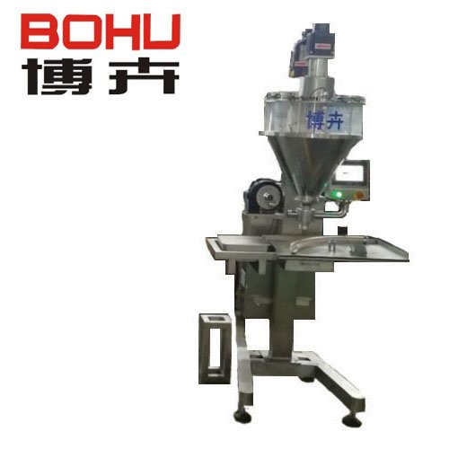 该半自动充填包装机能自动完成计量、充填等工作。由于是按照国家GMP标准而设计,以至于适用于包装那些易流动或流动性极差的粉粒状物料,如奶粉、饲料、米粉、白糖、咖啡、味精、固体饮料、葡萄糖、米粉、固体医药、农药、粉粒状添加剂、染料等。