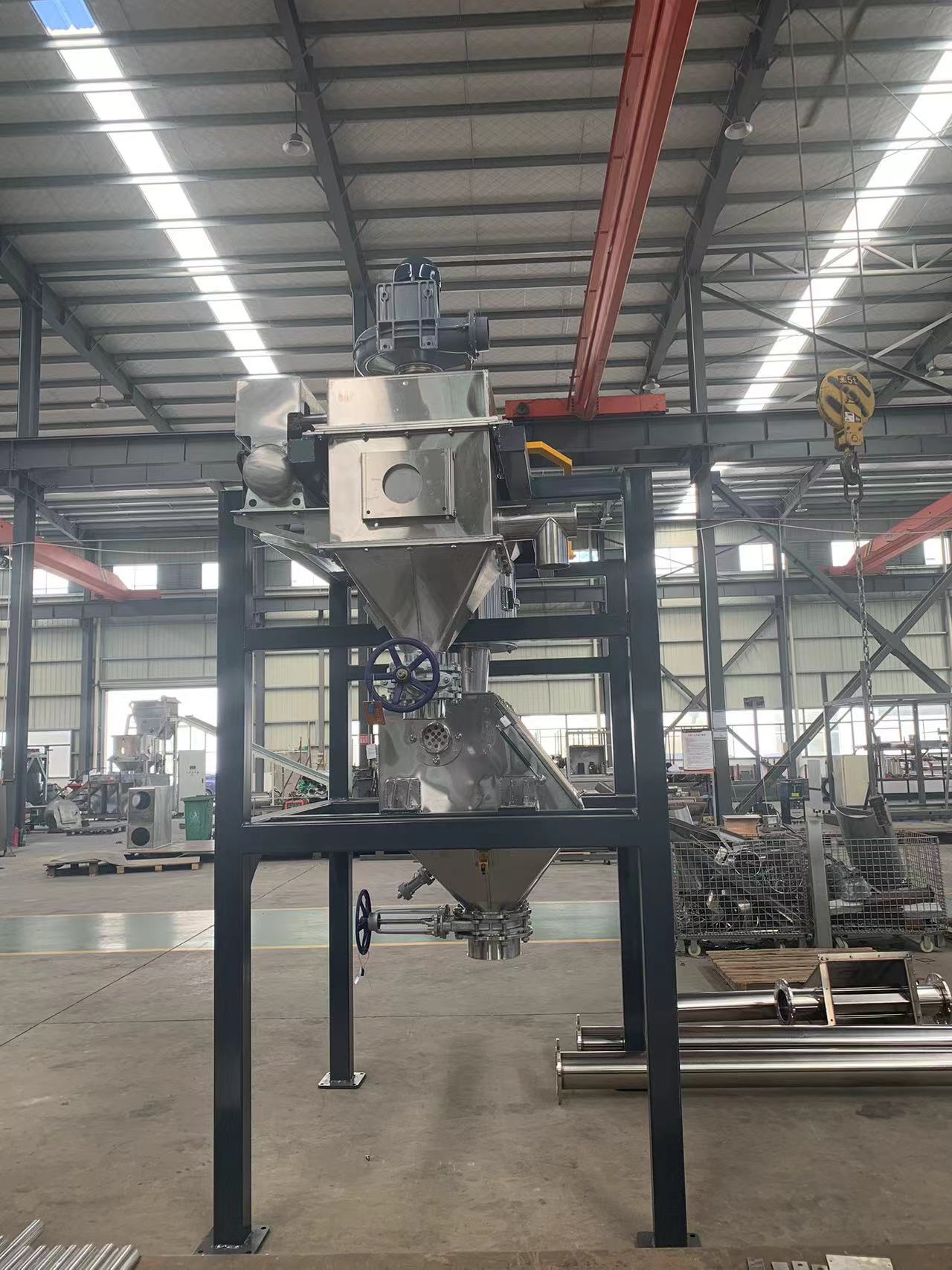 自动拆包机由皮带输送机、割刀装置、滚筒筛、中间支架、布袋除尘器、螺旋输送机、控制箱共七部分组成。通过风机将拆包时扬起的粉尘收集,并将粉尘进行过滤净化处理后达标排放。