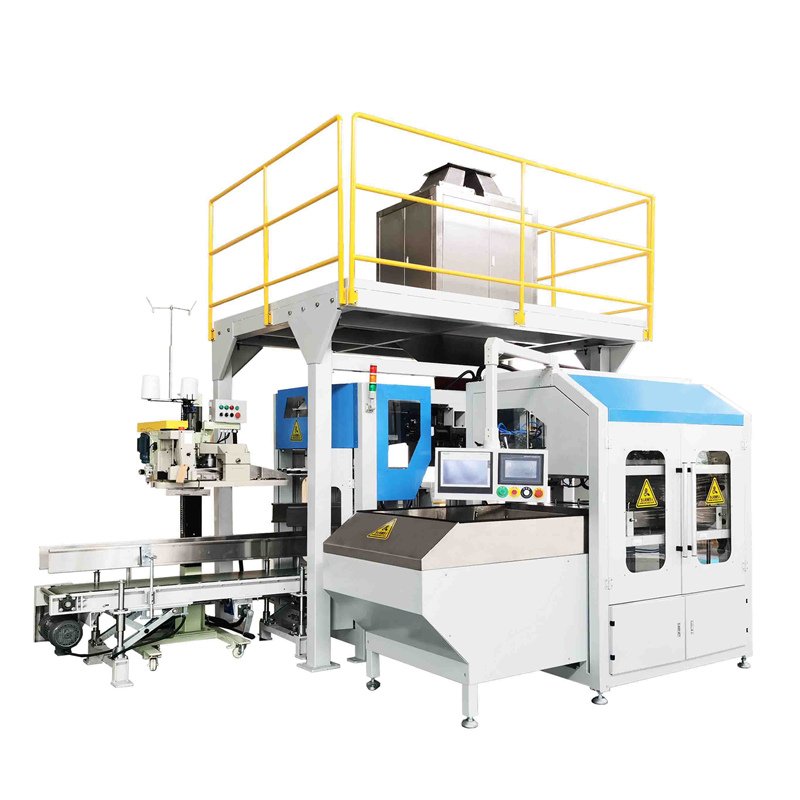 我司针对化工、肥料、饲料、粮食、种子、食品等行业的大袋子颗粒物料包装而设计的新型包装机机组,该机组具有自动称量、自动上袋、自动填充、自动送包、自动封口等功能。可与后道码垛机器人等设备实现联动,实现大规格包装、码垛无人化作业。