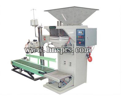 产品内容: 该机是人工协助上袋自动称重、夹袋、充填、振动、推袋,输送袋传递进行自动缝包或封口,