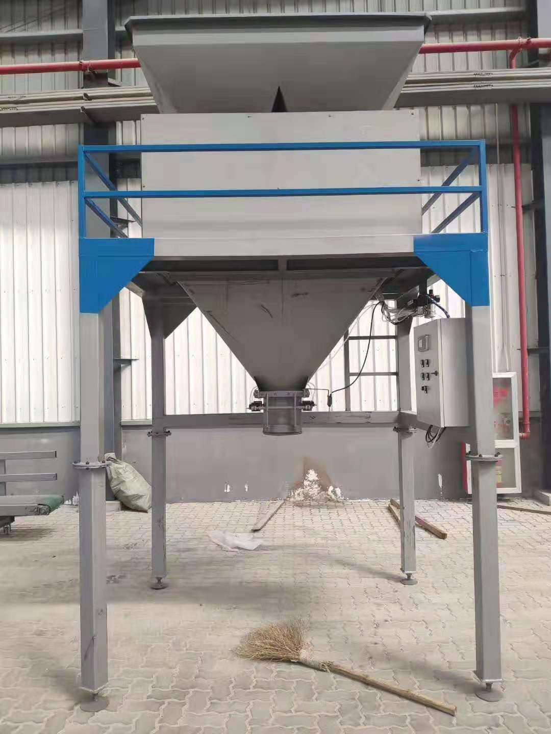 夹袋信号输入后,称量斗卸料门自动开启,当重量<=零位设定值时,称量卸料门自动开启,当生量<=零位设定值时,称量时,称量斗卸料门自动关闭,物料袋自动松开落入输送带上,被送到缝包机处缝包后进入进入下一控制循环。