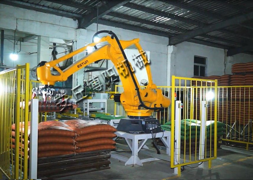 物料包装完成后,在传统的的工作中,是人工将袋子抬到一边,堆好、码好,等着下一步的装车。在这里,我们安丘博阳机械通过研发设计,发明了自动码垛机。自动码垛机主要可以分为两种,一种是高位码垛机,还有一种是机械手码垛机。先说高位码垛机,高位码垛机可以直接连接包装机。包装好之后,通过连板输送机直接输送到高位码垛机上,通过事先设置好的程序,进行多种样式的码垛堆垛,达到一定的袋数之后,通过叉车将整个的物料垛运输的指定位置,完成码垛工作。机械手码垛机是智能性比较高的码垛机,也叫机器人码垛机。该码垛机也是通过程序设定,将包装好的物料,一袋袋的用抓手抓到指定位置,堆成合适的物料垛,完成堆垛码垛工作。