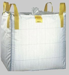C型导电集装袋 导电集装袋也叫防静电集装袋,可分为导电集装袋和抗静电集装袋。它是通过编织在袋体布料和吊带中的导电丝的接地起导电作用。集装袋用导电塑料编织布和导电吊带制成,并有导电薄膜接地。导电集装袋可用于着火点大于或等于0.14mJ的易燃粉尘和气体环境。 有效地去除在装料和卸料时产生的静电,防止燃烧和爆炸等危险情况发生,主要用于化工、医药等行业危险物品的包装。