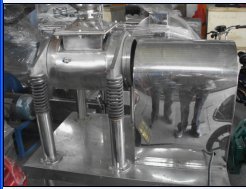 该机为卧式振动磨,物料由加料斗进入粉碎室,经振动将粉碎室内的研磨棒与物料碰撞、研磨而获得粉碎,该机配有水冷却装置,可控制粉碎室内的温度,整机按“GMP”标准设计,采用不锈钢制造,设备在全密封状态下作业,无粉尘飞扬,无环境污染。