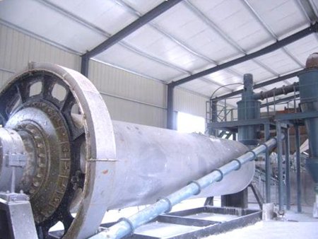 整套生产线由球磨粉碎系统和分级机系统两大部分组成。整条生产线采用新型超细球磨机对物料进行粉碎,得到含有一定细粉的半成品粉体,半成品被吸入强制分级机,在分级机主机内彻底的分级,得到达到粒度要求的产品。被分级筛选出来的粗粉通过传送装置,自动返回球磨机继续进行粉碎。