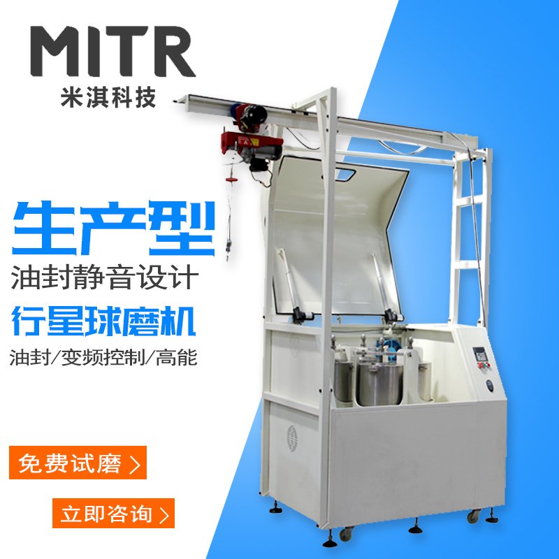 全方位行星球磨机是行星球磨机系列第三代升级产品。与立式的行星球磨机不同之处在于当行星罐体工作时,行星主盘同时做不间断360度旋转或任意角度工作,使得物料充分的参与研磨、混合从而降低物料沉底现象。因此该款又被称为无死角行星研磨机。(**号:ZL 2016 2 0089490.1)