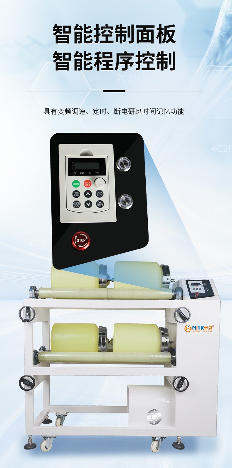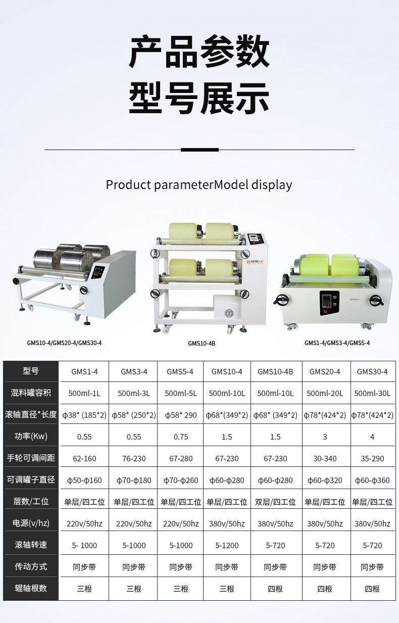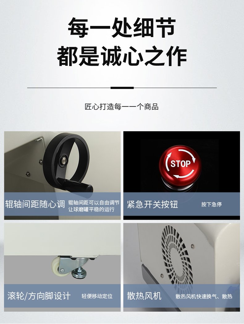 ●辊轴间距手轮调节,防止罐体跑偏移动。