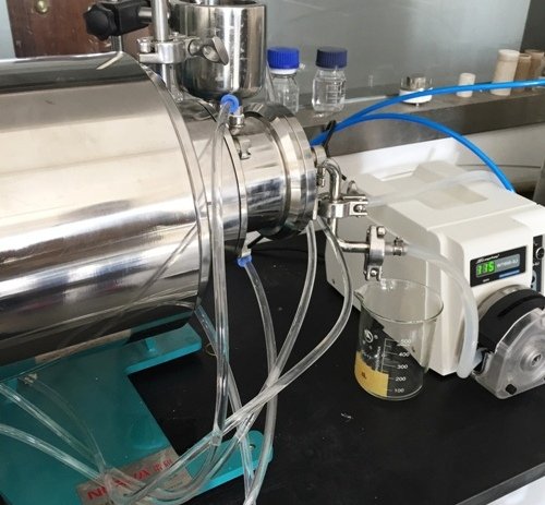 诺研-NORVA(上海)公司在NMZ-Lab03纳米研磨机基础上改进的一款全新全棒销纳米研磨机 采用循环式结构,外置泵,用于液体中固体颗粒的超细研磨和分散,可对流量进行高精度控制和计算,方便后期大生产数度的放大。可循环和批次研磨工艺。粉体产品由外置泵泵如入研磨腔。在棒销的带动下实现研磨、分散。高均匀性,低能耗的特点。清洗简单,可以小批量实验配方,储料罐外置独立,**批量为5L,软连接。材质可选择德国GX系列合金钢,耐磨95%钇稳定氧化锆等,可将研磨产品至纳米范围内。*小细度经马尔文3000激光粒度仪检测平均粒径D50≤50纳米。特别适用于高粘度浆料的研磨和分散。