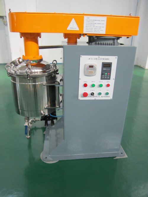 新立磨机是一种全封闭、可升降、高效率的湿法研磨设备,广泛应用于电子、陶瓷、电池材料等化工行业。目前,随着人们对粉料研磨细度和纯度要求的不断提高,传统的搅拌球磨机由于设备转速低、不密封,粉料的研磨细度不够,搅拌速度快时容易造成浆料飞溅, 产品与环境容易造成污染等问题。该机设计成全封闭结构,产品纯度和环保得到保证,转速快时也不会溅料,研磨细度可以更细,效率更高;设备安装了电动升降装置,从而方便了设备的维护保养,提抽真空或充氮气等保护气体,特别适合一些易燃易爆场合的使用。