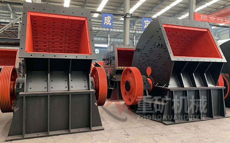 重锤式破碎机主要有机壳、转子、重型锤头、底架等组成,当重锤破工作时,物料从进料口进入机腔内部,被高速旋转的重型锤头飞速撞击而破碎,破碎的物料反击到耐磨衬板,再次撞击粉碎,物料在下落的过程中经过多次撞击、研磨,然后合格的物料从底部的筛板排出,不合格物料继续在机腔内破碎,直至达到筛板出孔的要求。