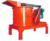 立式复合式破碎机,物料从入料口进入破碎腔,叶轮(锤头)在电机的带动下高速旋转,和物料发生碰撞,物料在不断的撞击,摩擦中被粉碎,直通式的设计在粉碎湿料时不会造成出料堵塞,所以又叫湿料破碎机.复合式破碎机的底部安装有活动蓖条,蓖条卸下可以用来打石子,安装上可以用来制砂,出料细度可以通过调速电机调节叶轮转速控制,使用方便,破碎锤头采用高锰钢耐磨材料制成,高效耐用,使用时间长。