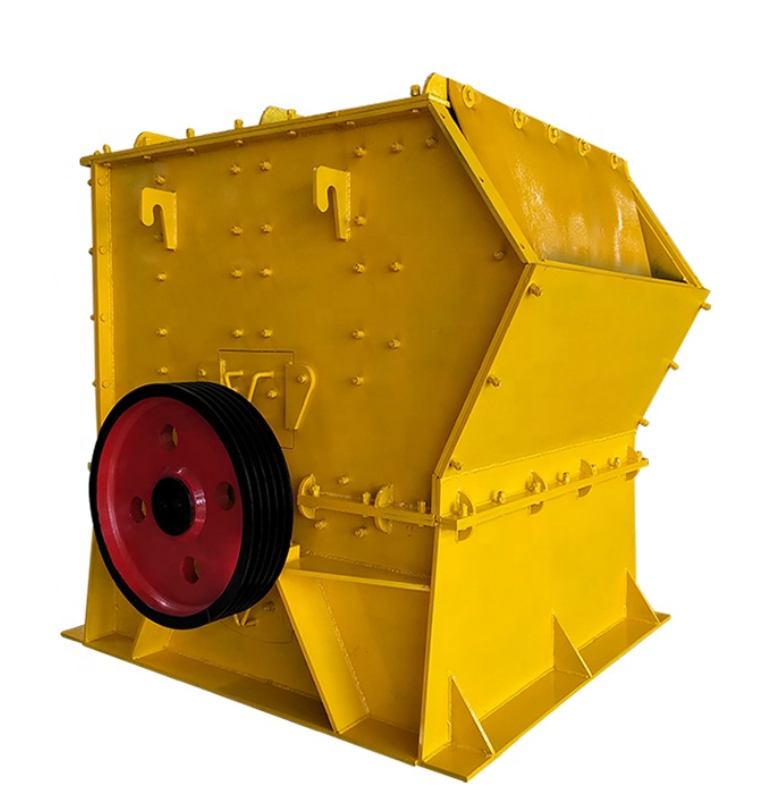 破碎机的主轴上安装有数排挂锤体。在其圆周的销孔上贯穿着销轴,用销轴将锤子铰接在各排挂锤体之间,锤子磨损后可调换工作面。挂锤体上开有两困销孔。销孔中心至回转轴心的距离是不同的,用来调整锤子和箅条之间的间隙。为了防止挂锤体和锤子的铂向窜动,在挂锤体两端用压紧锤盘和锁紧螺母固定。转于两端支承在滚动轴承上,轴承用螺栓固定在机壳上。主轴和电动机用弹性联轴器直接连接。为了使转子运转平稳,主轴的一端装有一个飞轮。