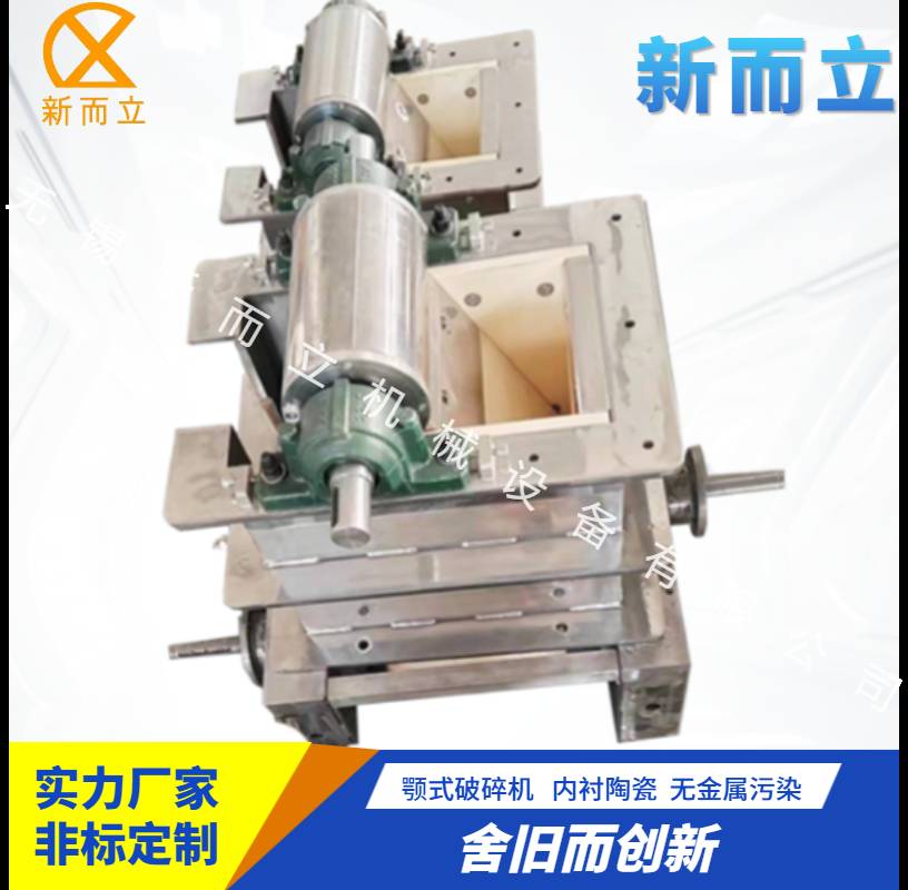 颚式破碎机是在原复摆颚式破碎机的基础上,针对精细化工高纯、抗污染、耐腐蚀等特定要求而优化设计的产品。动颚、定颚均衬有刚玉陶瓷衬板或耐磨不锈钢,破碎腔两侧面衬有PP板(或刚玉陶瓷板),机身和相关零件均采用SUS304不锈钢制造,提高了设备的耐磨性和耐腐蚀性,且对物料无污染,可作为气流粉碎前的粗粉碎机使用。该机结构简单、维修方便,工作安全可靠,适用范围广。