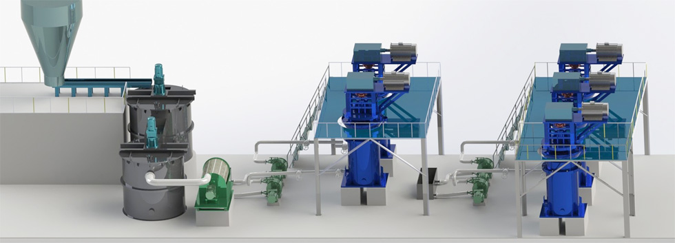 开路磨矿,短流程,不需要分级+浓缩系统,浓度与细度易于稳定控制,投资少,成本低廉。