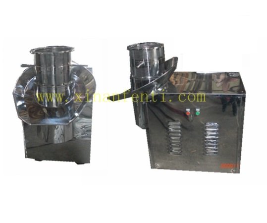 由压料刀旋转时将粉末物料加压送给造粒刀,造粒刀旋转时,通过离心力和曲线推力,将物料挤出网孔,完成造粒任务。300-A型两面出料,产量比摇摆式颗粒机提高4倍,每小时产量可达200-500kg,成品率高,可达到95%以上,运转平稳、噪音低、安全可靠,基本消除了事故,操作容易,维修方便,使用寿命长。目前该机在全国**,为了贵单位能提高产品的产量和质量,节约能源,降低成本,创造更高的经济效益,欢迎贵方能尽快使用XKJ-300型新一代旋转颗粒机。