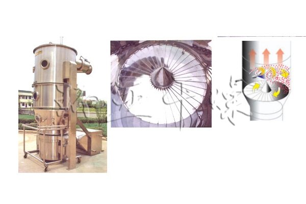 LBF旋流流化床制粒包衣机是将流化床做成叶片式结构的流化床,并使叶片呈一定斜度,让气流从叶片的间隙通过,形成环流状的强大气流,使物料呈旋涡状似的有序运动,同时安装在侧壁的气动喷嘴将粘合剂或包衣液喷入呈旋涡状的物料层,从而将粉体制成颗粒或获得连续均匀的衣膜。