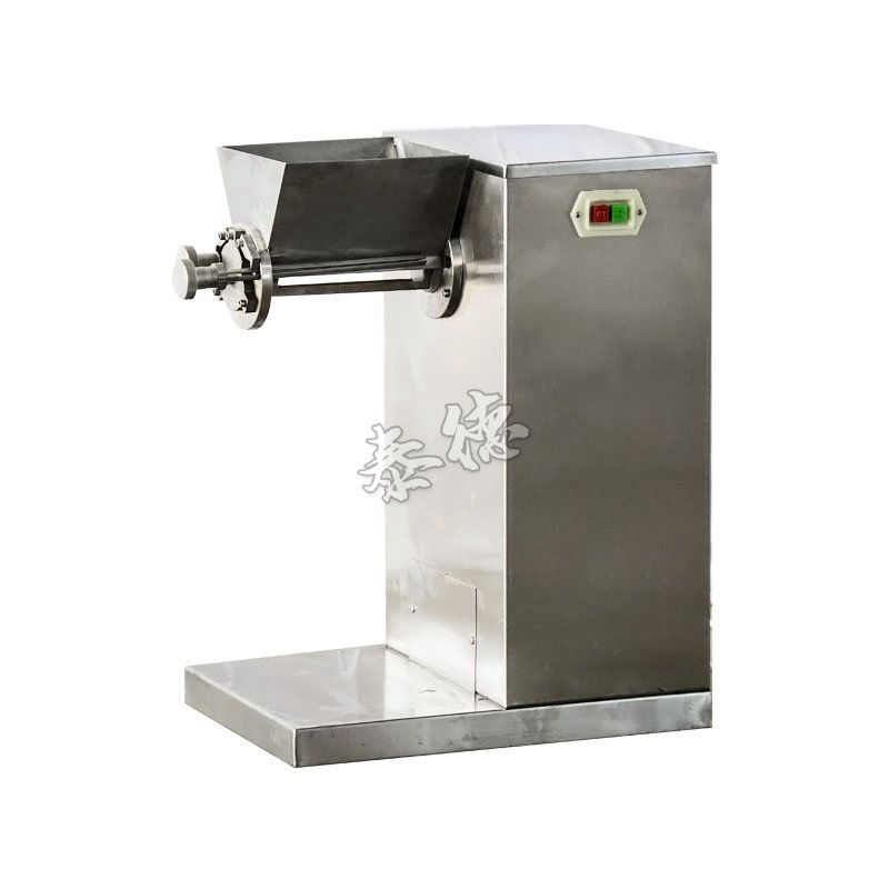 摇摆式颗粒机适用于制药、食品、化工等行业将潮湿的粉料研制成所需颗粒,也可将块状干料粉碎成所需颗粒。其通过机械传动使滚筒往复摆动,将物料从筛网中挤出制成颗粒,只要更换不同目数的筛网就制成粗细不同的颗粒,筛网、滚筒装拆简便,整机外围及与物料接触全采用不锈钢材料,更易于清洁和保养,适用于制药、化工、食品、科研单位、实验室、医院、小批量生产,是生产颗粒冲剂、片剂或胶囊的设备。也可对一些条状及不规则状的易碎、易松散、较脆物料的打碎打散之用,作为磨粉的前道工序。