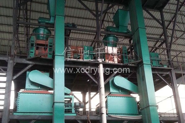 挤压造粒的形式可以有对辊式和轮辗式两种,对辊式挤压是先压成大块,再破碎成颗粒,这样装置的能力大、颗粒强度高、能耗低,对辊挤压在国外使用广泛。轮辗式是在辊表面直接做成有穴槽型的形状,一次挤成成型颗粒。产品强度较低有时需添加粘结剂。适合做有机肥和复合肥等颗粒肥料。