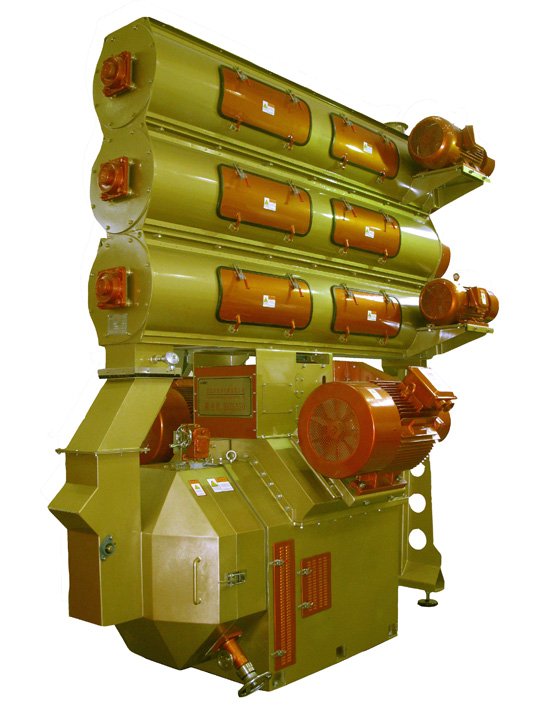 两辊结构更利于调整压辊布料的均衡,制出颗粒更加均匀;