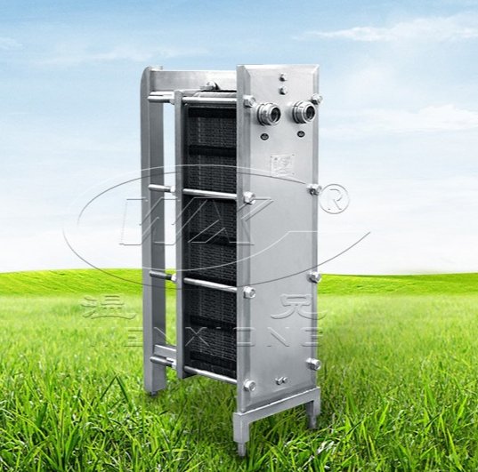 板式换热器由一组波纹状金属板片构成,金属板上有孔,通过这些孔的两股流体这间发生。板组合装在一块框架板弄和一块压力之间,用拧紧螺栓压紧。板上装有密封垫圈。用以密封通道并将流体交替引导到通道中。板片数量由流速流体的物理属性、压降和温度程序决定。板的折皱促进了流体的紊流,并对板的压差起到支撑作用。用于制药和其它液体食品产品、原位清洗液和水的冷却和加热。以及某些应用中的巴氏消毒。