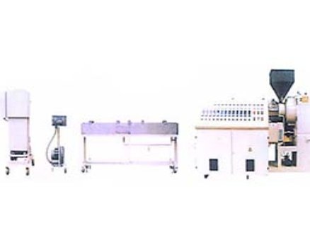 冷拉条造粒机组由SJ系列单螺杆挤出机、不锈钢冷却水槽、吹干机、切粒机组成。