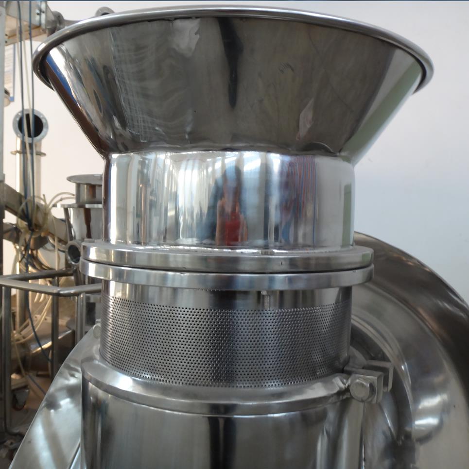 本机是通过一组旋转碾刀,将前道工序制成的湿材注入环碾刀的不锈钢筛筒筛孔中,从而制成圆柱状的湿颗粒,供下道工序抛丸使用。本设备可通过更换不锈钢筛简来取得不同大小的颗粒。