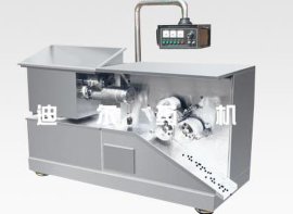 将混合均匀的药料投入到药斗内,通过进药腔的压药翻板,在螺旋推进器的挤压下推出多条相同直径的药条。在自控导轮的控制下同步进入制丸刀后,连续制成大小均匀的药丸。