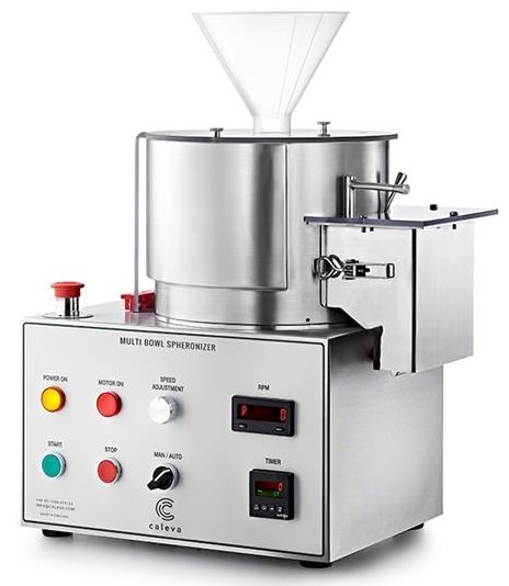 其中60mm和85mm为滚桶插件,使用316不锈钢或FDA认证塑料材质。滚盘采用不同的设计模式,并且材质可以选配不同的材料或涂层;批量大小受体积限制,并取决于物料的密度;对于医药材料,正常情况下250mm滚碗单批次滚圆量大约为600g。