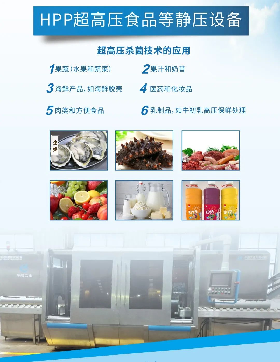 超高压食品等静压机用于果蔬、奶制品、肉类等食品非热加工保鲜及海鲜脱壳处理。