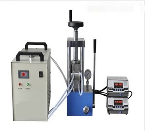 模具开始升温直到升到我们设定的温度一般不得超过300摄氏度。拧紧放油阀,摇动压把开始加压,加到所需要的压力。将压力保持一段时间。将温控器的加热温度设定为0停止加热。打开冷水机对加热板进行快速降温将设备降到室温。后将压片机泄压取出样品。