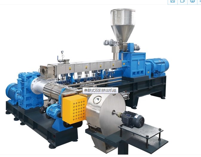 对于某些聚合物,造粒必须在没有水和湿气的条件下进行,因此挤出系统应具有足够的冷却能力以适应该过程,而有些材料属于剪切敏感或热敏感的。 SAT双阶挤出机就是设计的用于此类过程。主双螺杆挤出机可提供混合和分散作用,而不会产生过度剪切,低速单螺杆挤出机可提供足够的冷却和压力。