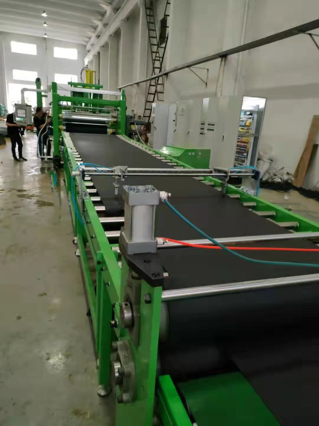 二:设备配置:密炼机----提升机------锥双喂料机---------单螺杆挤出机机-----模具-----三辊压光机---------冷却导辊支架------切断机-------收卷机