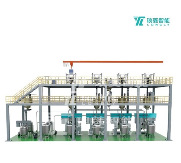 双行星匀浆自动化产线主要由制胶系统、粉体投料系统、溶剂输送系统、匀浆系统、浆料输送系统和MES中央控制系统等组成;通过投料上料、储存计量、混合制胶和行星搅拌等操作步骤使物料进行迅速实现匀浆,在较短时间内达到完全均匀的混合效果。