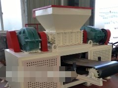 轮胎撕碎机由电机、减速机、旋转刀轴、进口的动刀、定刀、机架、机座、箱体、等主要结构组成。