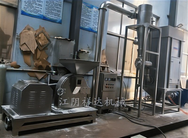 主要适用于制药、化工、食品(例:生姜、辣椒、胡椒、油麦、大豆、白糖|八角、桂皮)等中低硬度物料的粉碎加工,细度在10-120目之间调节,具有产量高、粒度细、噪声低、能耗低、维修简单、安装方便等优点,特别适用于油性、粘性、热敏性、纤维性等低硬度物料的粉碎加工。