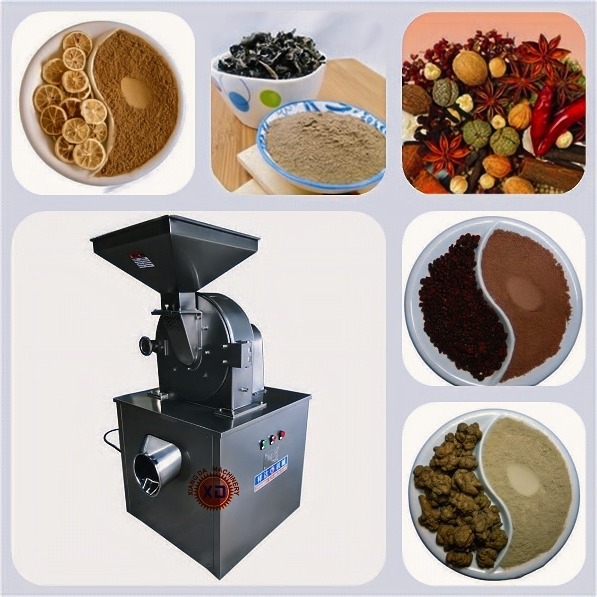 主要适用于制药、化工、食品(例:生姜、辣椒、胡椒、油麦、大豆、白糖|八角、桂皮)等中低硬度物料的粉碎加工,细度在10-120目之间调节,具有产量高、粒度细、噪声低、能耗低、维修简单、安装方便等优点,特别适用于油性、粘性、热敏性、纤维性等低硬度物料的粉碎加工。