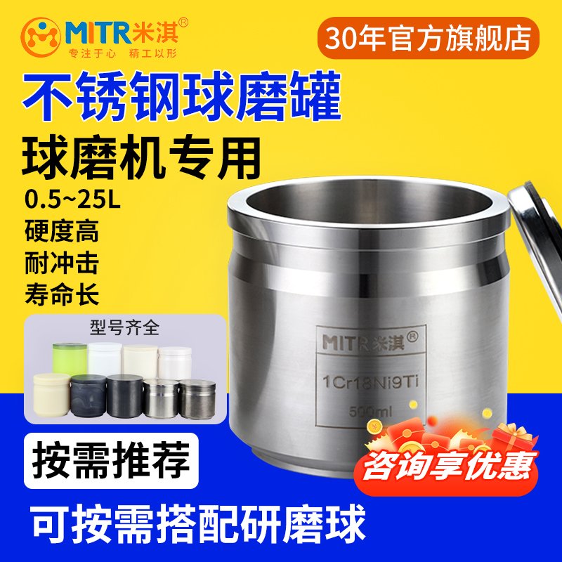 MITR米淇生产的行星式耐磨球磨罐材质:氧化锆、氧化硅、玛瑙、硬质合金、不锈钢、高铬钢、尼龙、聚氨酯、聚丙烯(pp)、聚四氟乙烯、氧化铝等;中南大学粉冶院60年学术继承和米淇持续创新(彭伟才博士专家团队)给您推荐配置,帮您以成本制造纯度品质的粉体;MITR米淇行星式耐磨球磨罐体积主要有:0.1L、0.25L、0.5L、1L、1.5L、2L、2.5L、3L、4L、5L、10L、15L、20L、25L、30L等.