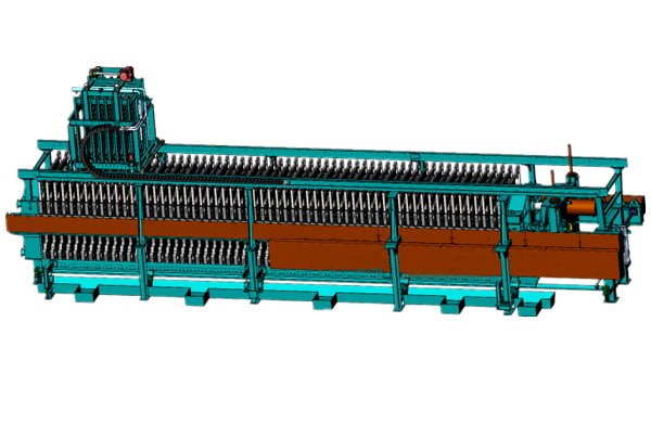 VHPF(Vannhe Horizontal Pressure filter)智能卧式压榨过滤机是一种全自动快速作业的压滤机,在普通卧式压榨过滤机的基础上增设了全自动工业控制系统,预留丰富API接口,支持智能工厂中央监控。设备由液压站及控制系统、传动顶紧机构、滤板系统、翻板系统、滤布清洗系统、振打卸料系统组成。设备工作时整机自检,智能判断设备工作状态,正常状态下由机头主液压缸提供动力,推动滤板组合拢,形成若干密封工作腔室,腔室间相互独立并集中供料,物料正压进入工作腔室,在滤布两侧形成压力差,完成固液分离动作,滤饼保留在腔室中,滤液从腔室排水孔中流出并收集起来。然后根据生产工艺流程的要求,依次选择性的进行隔膜挤压、水洗和风干动作,得到含水率极低的滤饼。此时设备底部卸料挡板由液压缸驱动打开,卸料皮带运输机开始动作,主液压缸卸载并拉动滤板组开始卸料动作,当滤板组充分打开时,振打卸料系统开始运作,利用滤布和滤饼相对运动,彻底完成卸料动作。卸料挡板关闭,全自动滤布清洗系统运作,开始进行滤布清洗再生,有效延长滤布寿命和提高整机工作效率。