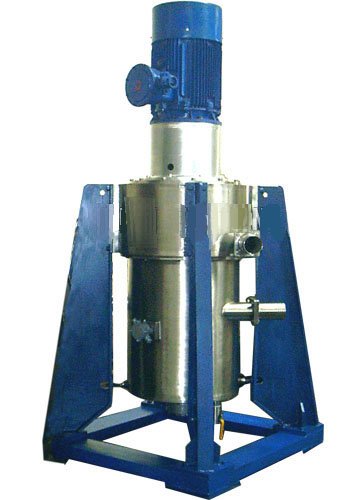 具有密度差的多相混合液进入该实用新型后,在同一机器中完成混合传质过程和分离过程。直联型电机通过联轴器带动转鼓高速旋转, 产生所需要的强大离心力场,通过变频器改变电机转速,可以改变离心力场的大小,以适应不同的物系。在此离心力场中,多相混合液因为其密度不同,所受的离心力亦不同,固而产生分层现象,从而达到萃取或分离的目的。