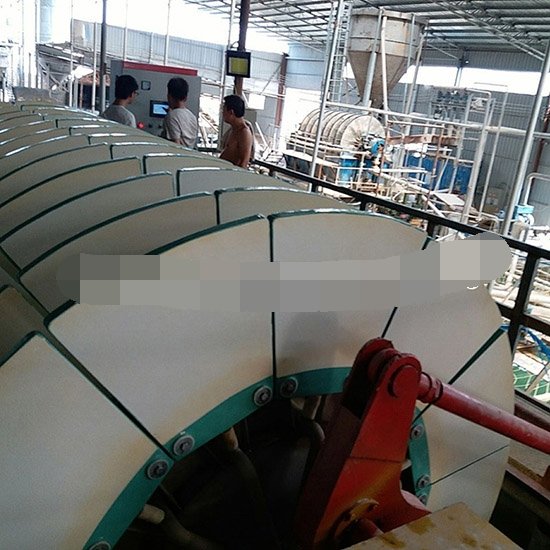 (6)环保效果明显:由于滤液清澈,可反复利用,减少排放,符合当前清洁生产的环保大趋势。新型过滤介质的诞生对于固液分离技术的发展具有划时代的意义,陶瓷过滤板能够产生毛细作用并且具有优异的机械性能,使得陶瓷过滤机与其它以滤布为过滤介质的过滤机相比具有许多优势,正介于此陶瓷过滤机得到广泛应用。陶瓷过滤机可广泛用于有色金属矿山、煤炭、化工、农药、制药、等行业的脱水处理,应用领域广泛。