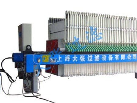 由于某些物料粘度较大,造成滤饼难以自动剥落,我公司开发的滤布曲张系统可使压滤机在工作时能够改变滤布倾斜角度,成倒V字形,同时持在滤布上的弹簧网伸缩而产生抖动,使滤饼自动脱落。曲张杆采用增强聚丙烯材质,重量轻、耐腐蚀,具有动作灵活可靠、维护方便等特点。