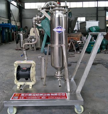 袋式过滤机是一种压力式过滤装置,液体由过滤机外壳的旁侧入口管通过泵打入滤袋,滤袋本身是装置在加强网内,液体渗透过所需要细度等级的滤袋即能获得合格的滤液,杂质颗粒被滤袋捕捉。该机更换滤袋十分方便。滤袋可根据物料细度要求方便更换。