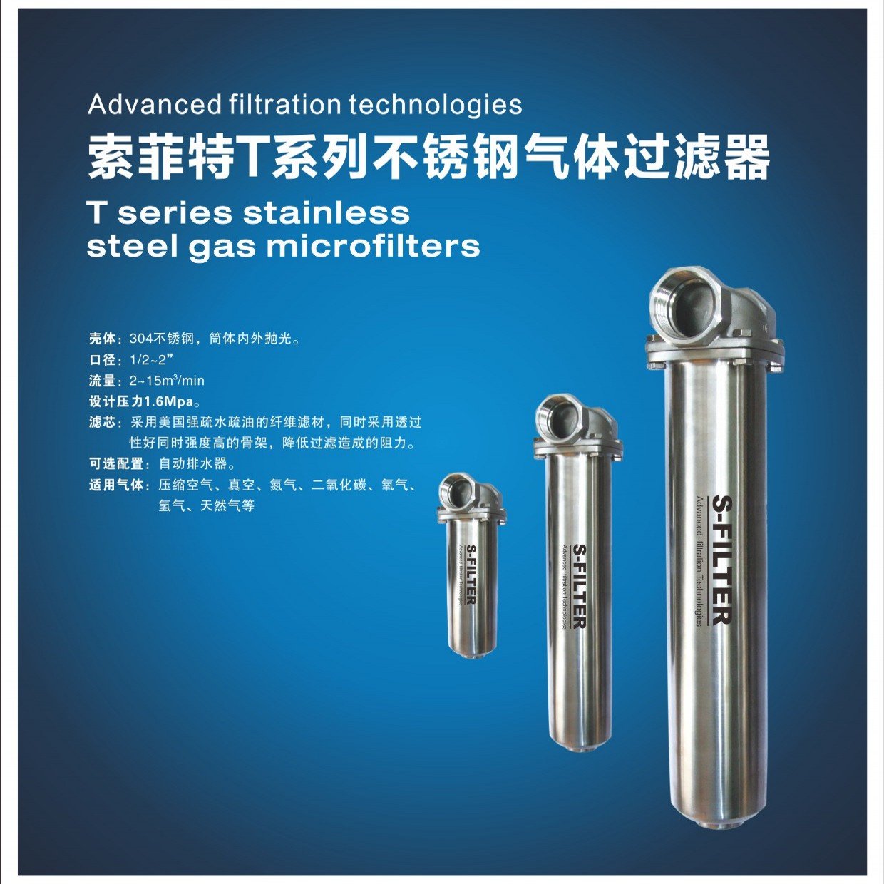 索菲特T系列不锈钢气体过滤器T series stainless steel gas microfilters