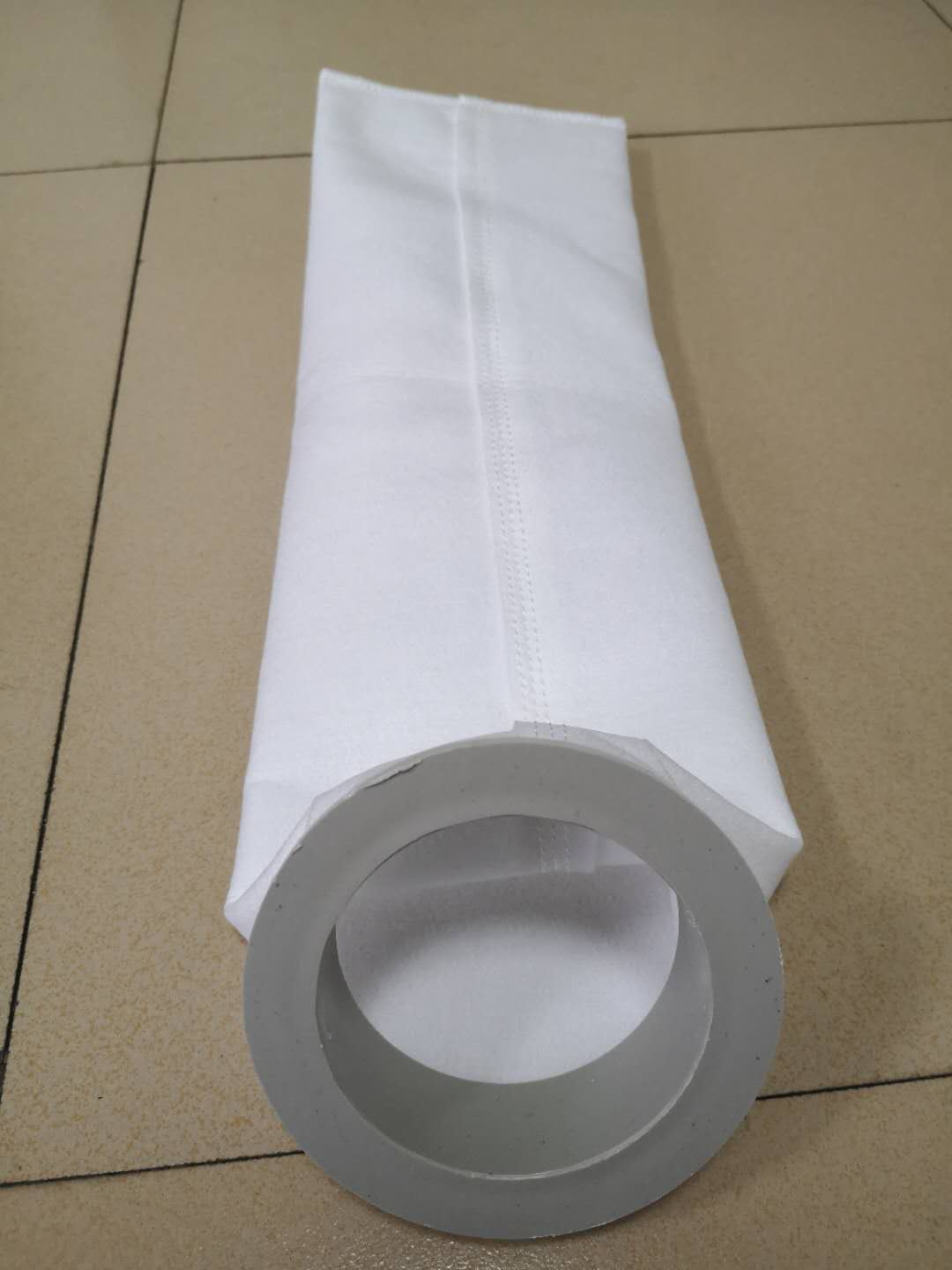 5、不锈钢及镀锌钢圈氩弧焊接技术。直径误差仅小于0.5mm,水平误差小于0.2mm,选用这种钢圈制作的滤袋安装在设备中可以提高密封程度,降低侧漏的发生几率。也可以采用塑料环口,它与过滤机结合紧密,杜绝外露