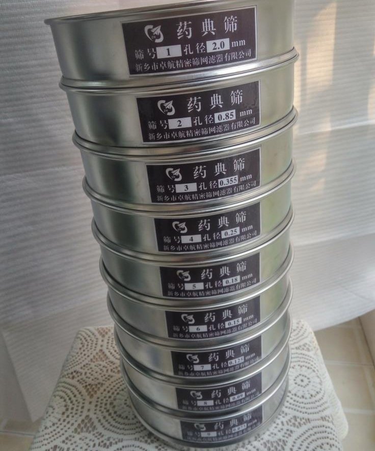 药典筛(又称标准药筛)是指按《中国药典》规定,全国统一规格的用于药剂生产的筛。药典筛用于中药、西药、生产制剂厂家或药典单位对液体、粉体、颗粒状药品进行分级、筛分、过滤、去杂等。卓航药典筛可以手筛,为提高效率还可以与卓航标准振筛机配合使用。药典筛在实际生产中,也常使用工业规格筛,这类筛的规格标准应与药筛标准相同,且不影响药剂质量。